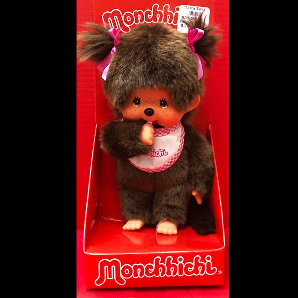 A classic & cute doll from Japan! She comes with two pink bows in her pigtails and has a bottle in her left hand that can be taken in & out of her mouth, with a soft plush body.